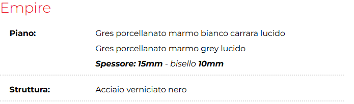 Empire Classic vetroceramica Tavolo Fisso è una creazione imponente ed elegante, perfetta per aggiungere un tocco di esclusività alla vostra casa. La struttura in acciaio verniciato nero garantisce solidità e resistenza, mentre il piano in gres porcellanato marmo grey lucido conferisce al tavolo un aspetto raffinato e lussuoso. Empire è la scelta ideale per chi desidera un complemento d’arredo distintivo e di grande impatto, capace di valorizzare qualsiasi ambiente con il suo stile classico e ricercato.