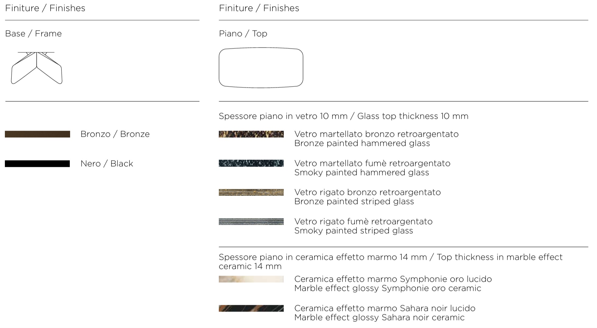 Marmo Sahara Noir Lucido ,Marmo Symphonie Oro Lucido ,Vetro Martellato Bronzo Retroargentato ,Vetro Martellato Fumè Retroargentato ,Vetro Rigato Bronzo Retroargentato ,Vetro Rigato Fumé Retroargentato |